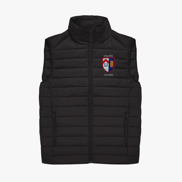 The College Bodywarmer, a high-performance fully certified sustainable bodywarmer. Crafted with a premium, satin feel, 100% recycled nylon outer shell and coated with a Fluorine-free durable water repellent (DWR) finish for superior weather resistance. Engineered for warmth without bulk, it features 100% recycled polyester roll padding and a recycled polyester lining, ensuring perfect insulation. Its comfortable gender-neutral design offers a lightweight sustainable layering solution. Embroidered to the left chest with your college shield, college name above and Oxford below.