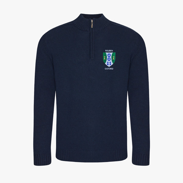 Perfect for when there is a chill in the air, the ¼ Zip Sweater is both versatile and stylish. A ribbed collar stand, cuff and hem, and contrast knit at shoulder, add a modern twist. Made from regenerated cotton with a jersey knit construction, this sweat has a fashion fit to make you look great whilst helping you do your bit for the planet. Embroidered to the left chest with your college shield, college name above and Oxford below.